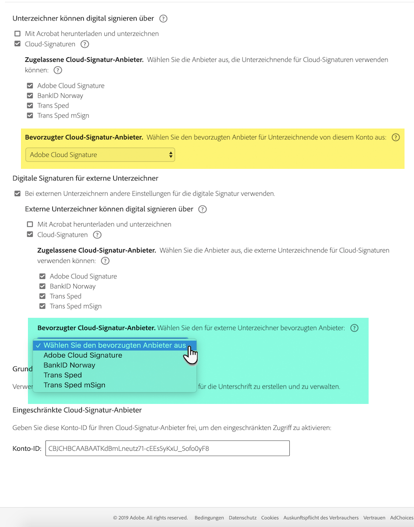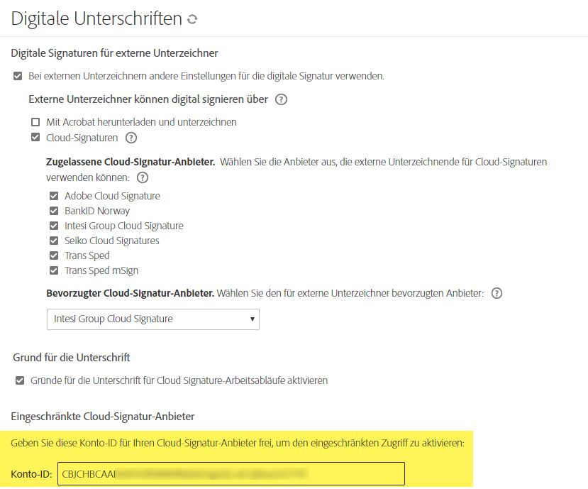 Bevorzugten Cloud-Signatur-Anbieter konfigurieren