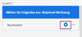 • Klicke auf den Play-Button, um eine Vorschau des Schritts aus Sicht von Lernenden anzuzeigen.