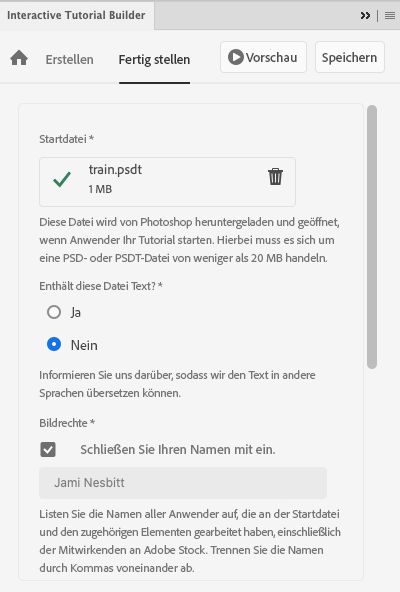 • Klicke auf Weiter oder auf die Registerkarte Fertig stellen, um dein Tutorial fertigzustellen.