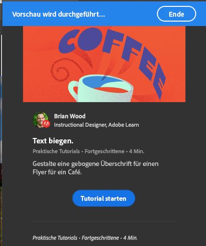 Tutorial Builder befindet sich noch in der Entwicklungsphase. Einige Illustrator-Funktionen werden in der aktuellen Version nicht unterstützt. Verwende am besten Elemente und Workflows, bei denen diese Funktionen nicht benötigt werden.