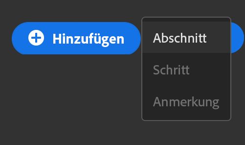 - Um eine Anmerkung zu einem Schritt hinzuzufügen, klicke auf den blauen Button Hinzufügen unterhalb des betreffenden Schritts. Wähle Anmerkung.