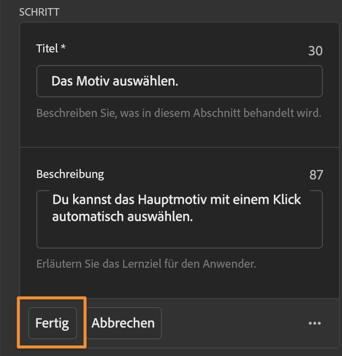 - Klicke unterhalb des Felds Beschreibung auf Fertig.