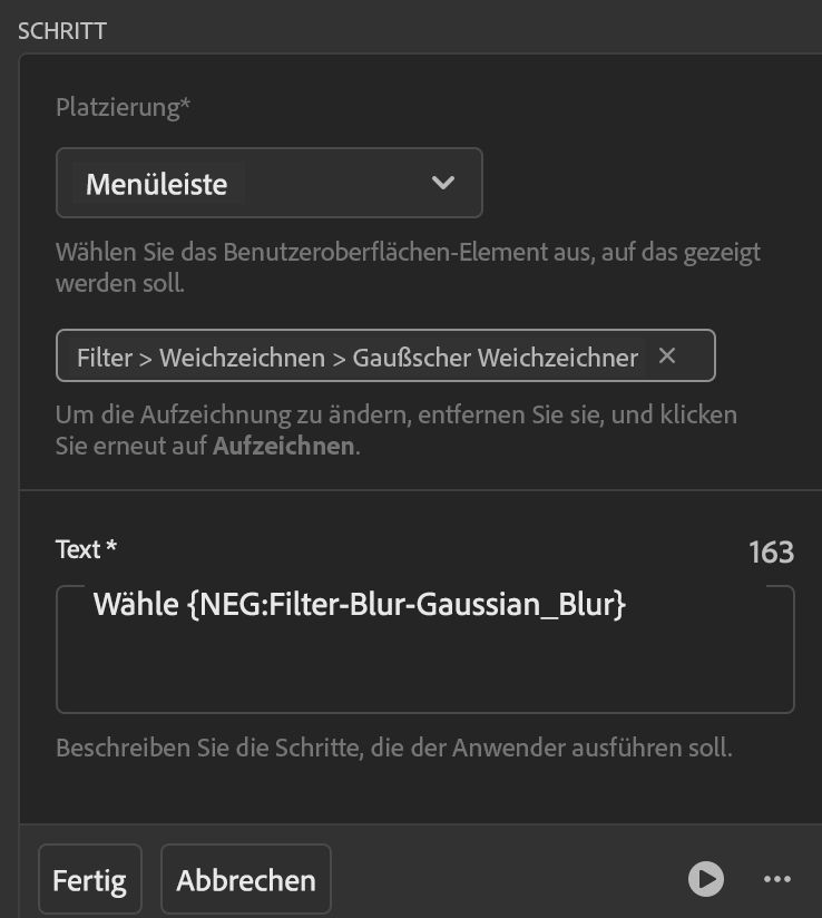 Wichtiger Tipp: Bevor du ein Tutorial vorschlägst, in dem ein Filter zum Einsatz kommt, probiere den Filter in der aktuellen Version von Tutorial Builder aus.