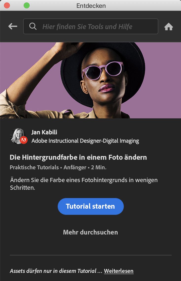 Die Startseite ist die Seite, die Endanwenderinnen und Endanwender im Bedienfeld „Entdecken“ sehen, wenn sie dein Tutorial auswählen. Führe folgende Schritte durch, um die Startseite für dein Tutorial einzurichten.