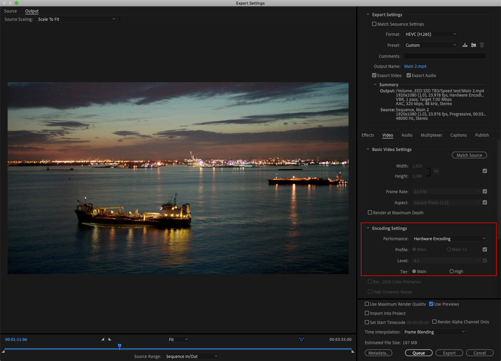 If your Preview codec matches your output codec, your export time can shrink from minutes to seconds.