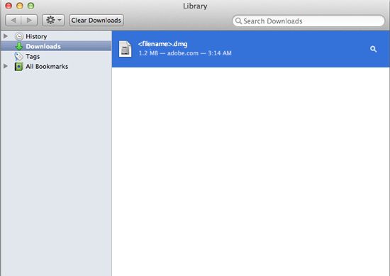 Double-cliquez sur le fichier .dmg. (Si vous ne voyez pas la fenêtre de téléchargement, sélectionnez Outils > Téléchargements.)