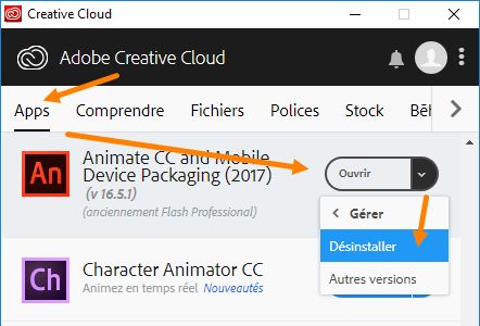 7. Utilisez l’application de bureau Creative Cloud pour réinstaller Animate.