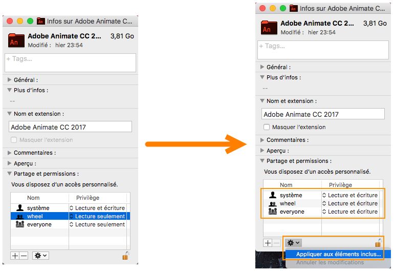 • Mac OS : Dossier Applications