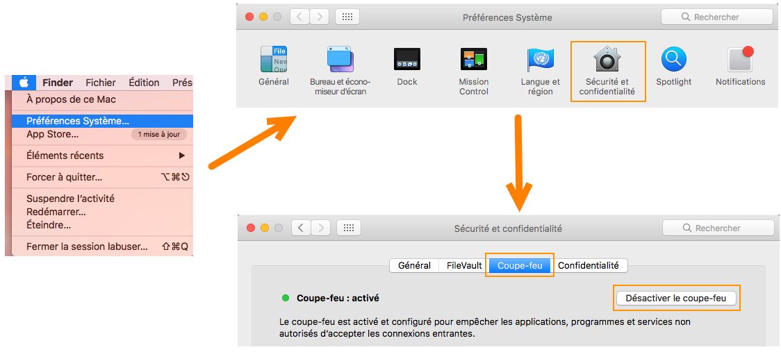 2. Sélectionnez Sécurité et confidentialité et cliquez sur l’onglet Pare-feu.