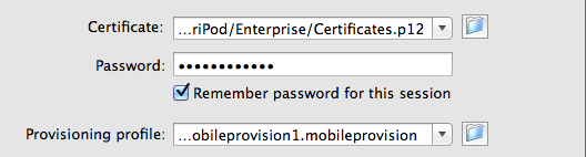 1. Dans l’onglet Déploiement, indiquez le certificat et le mot de passe. Vous pouvez, si vous le souhaitez, indiquer le profil de configuration de l’application AIR.