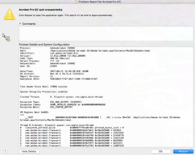 Wanneer u Acrobat start, verschijnt de volgende fout: Acrobat PRO DC stopt onverwacht.