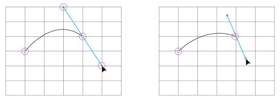 Voorheen kon u de koppeling van ankerpunthandgrepen verbreken om hoekpunten te maken. Als u vervolgens dat punt vloeiend wilde maken, kon u dat op twee manieren doen: