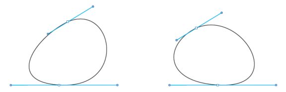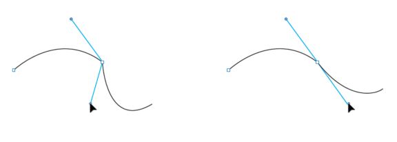 Als u in eerdere versies van Illustrator CC een vloeiend punt tekende met de pen, waren de tegenoverliggende handgrepen altijd even lang en gekoppeld.