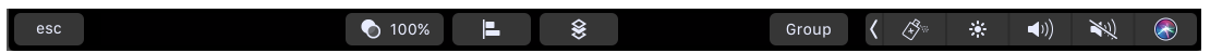 Standaard wordt een deel van de Touch Bar-interface gereserveerd voor macOS-opties. De opties voor Illustrator worden weergegeven in het app-specifieke gedeelte in het midden van de Touch Bar.