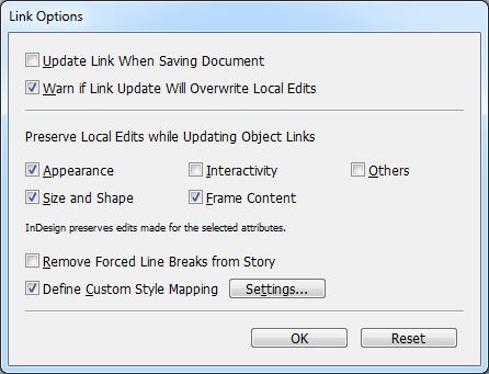 Koppelingsopties Koppelingsopties Opmerking:Druk op Alt (Windows) of Option (Mac OS) om de knop Annuleren te wijzigen in Herstellen. Klik op Herstellen om terug te gaan naar de standaardopties.