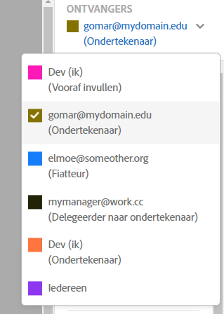 In de sectie Ontvangers kunt u met de bovenste schakelaar de basisvolgorde voor ondertekening selecteren: