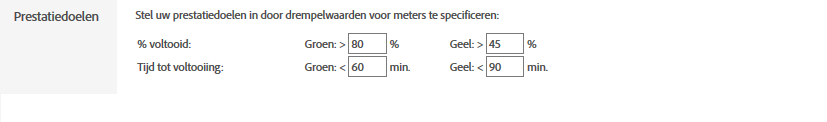 U kunt drempelwaarden voor prestaties stellen met behulp van de weergave Prestatiedoelen. De meters voor de prestaties worden in het resulterende rapport weergegeven.
