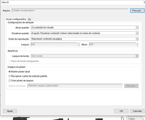 Especifica o arquivo JavaScript que é executado se um modelo 3D estiver ativado. Clique na opção Procurar para adicionar um arquivo JavaScript ao PDF.