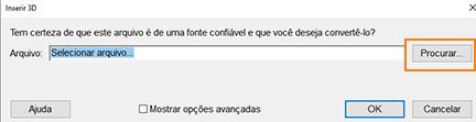 Na caixa de diálogo Inserir 3D, use a opção Procurar para selecionar o arquivo 3D.