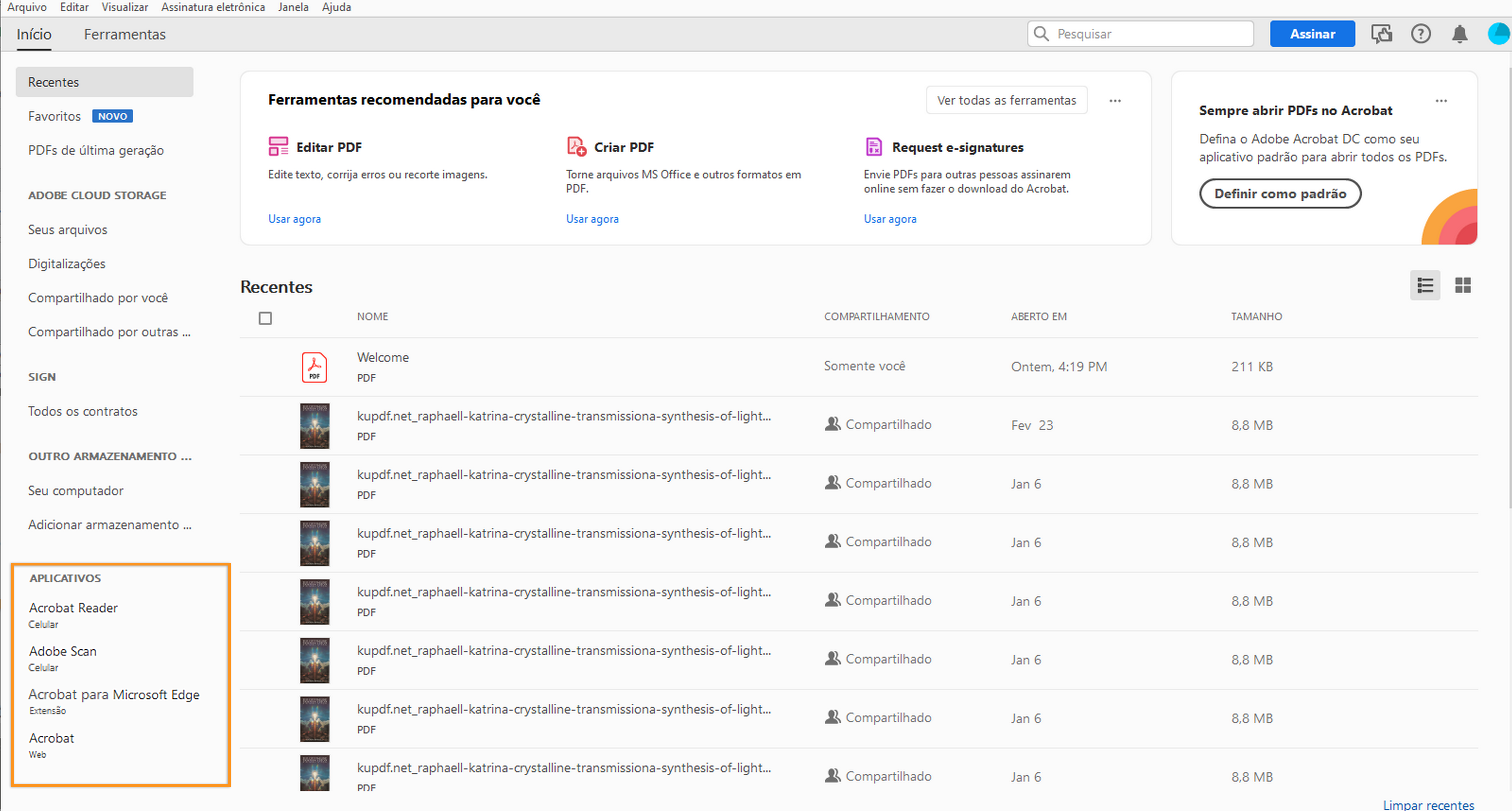 Aplicativo Acrobat para desktop