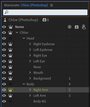 A lista de camadas na barra lateral esquerda do painel Marionete exibirá o seguinte: