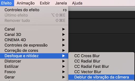 Para encontrá-lo no menu Efeito, selecione Efeitos > Desfoque e nitidez > Deblur da vibração da câmera.
