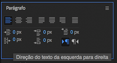 É possível alternar a direção do texto entre “Da esquerda para a direita” e “Da direita para a esquerda”. Para alterar a direção, clique nos botões de direção de texto no painel Parágrafo.