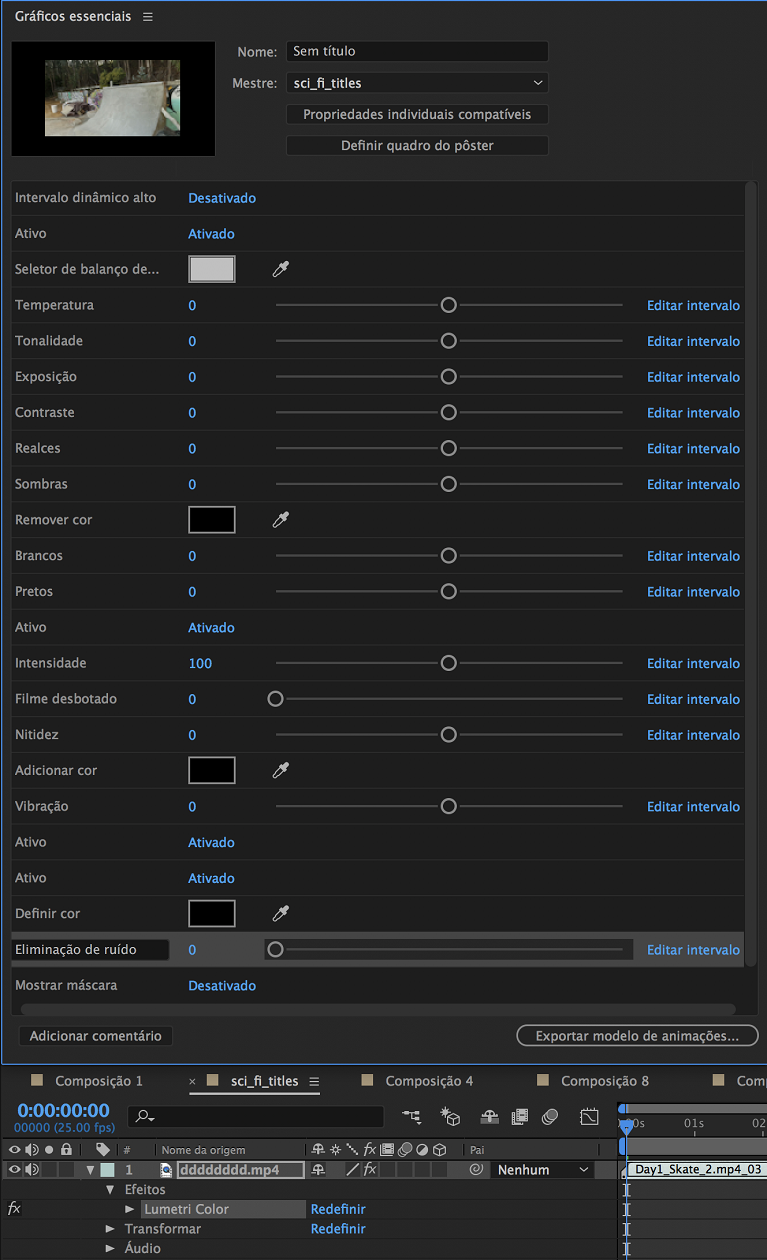 É possível definir o quadro de pôster para o modelo. O quadro de pôster é usado como a imagem em miniatura do modelo nas bibliotecas da Creative Cloud e no painel Gráficos essenciais no Premiere Pro.