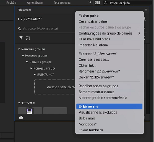 Você pode criar quantas bibliotecas quiser para organizar seus ativos. As bibliotecas criadas são exibidas no painel Bibliotecas no After Effects.