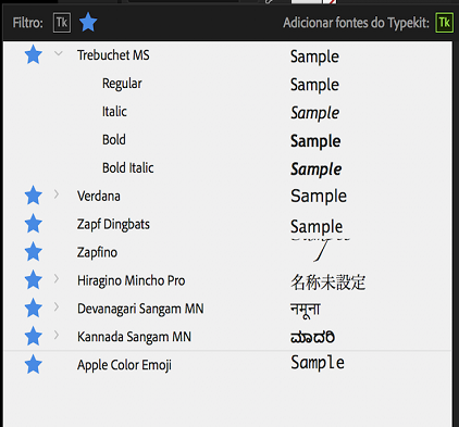 Exibir somente as fontes baixadas do Adobe Fonts