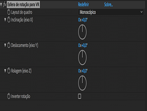 - Girar a projeção: define a rotação X, Y ou Z da posição do elemento em um ambiente esférico de 360 graus.