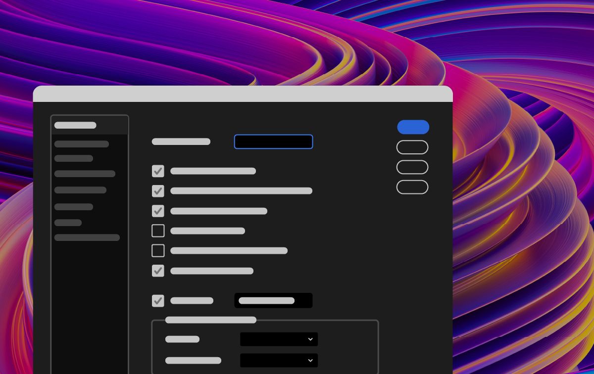 O After Effects agora está com um novo design moderno e mais consistente. Com dois modos escuros, um modo claro e um modo de acessibilidade de alto contraste, é possível personalizar a aparência de acordo com as suas preferências.