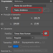 No painel Propriedades, selecione Texto dinâmico e clique no botão Adicionar fontes da Web, ao lado da caixa suspensa Família de fontes.