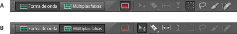 A. Ferramentas do editor de forma de onda para a exibição de espectro B. Ferramentas do editor de múltiplas faixas