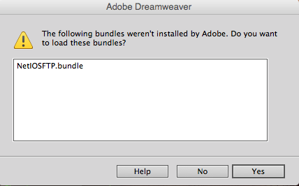 Para impedir qualquer possível ataque, agora o Dreamweaver solicita que você confirme se deseja carregar plug-ins de terceiros caso seja instalado em um local diferente de /Applications.