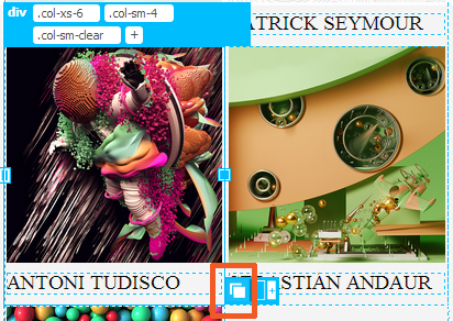 Além de ter os recursos Adicionar coluna/Adicionar linha para os documentos do Bootstrap em Visualização dinâmica, o Dreamweaver agora também permite duplicar linhas e colunas.