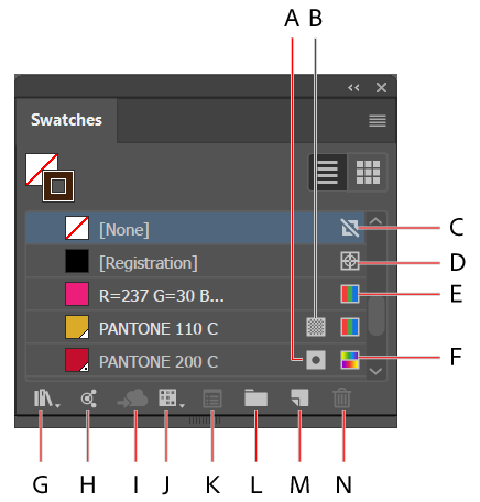 O painel Amostras no Illustrator contém os seguintes tipos de Amostras: