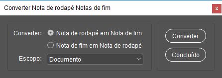 - Seleção: se deseja converter somente as notas de rodapé ou notas de fim em sua seleção.