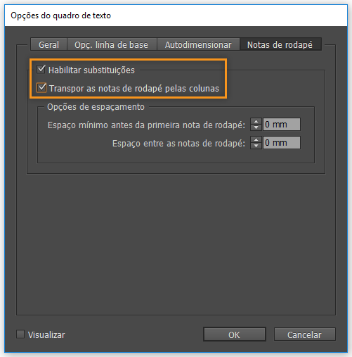 Selecione Habilitar substituições e Expandir as notas de rodapé pelas colunas.