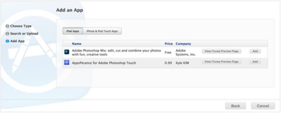 Na tela Adicionar aplicativo, selecione a plataforma e o nome do aplicativo ao pesquisar por Adobe Photoshop Mix (para o iOS).