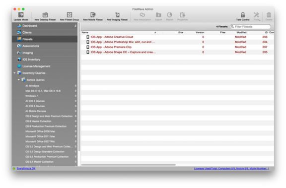 Abra o console Filewave Admin e selecione Novo conjunto de arquivos de dispositivo móvel.