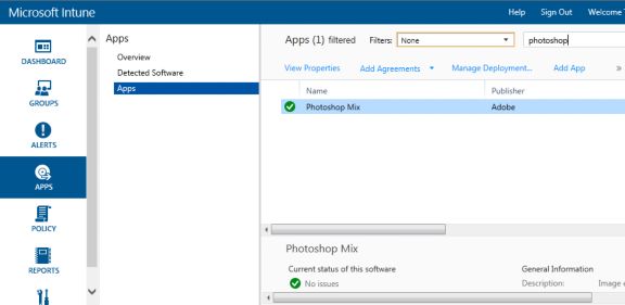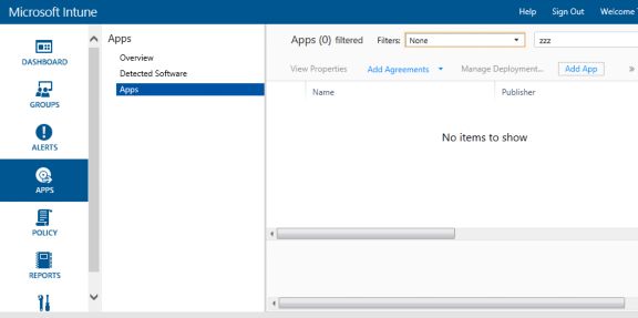 Você poderá verificar se o aplicativo está instalado ao pesquisar na guia Aplicativos da caixa de diálogo Microsoft Intune.