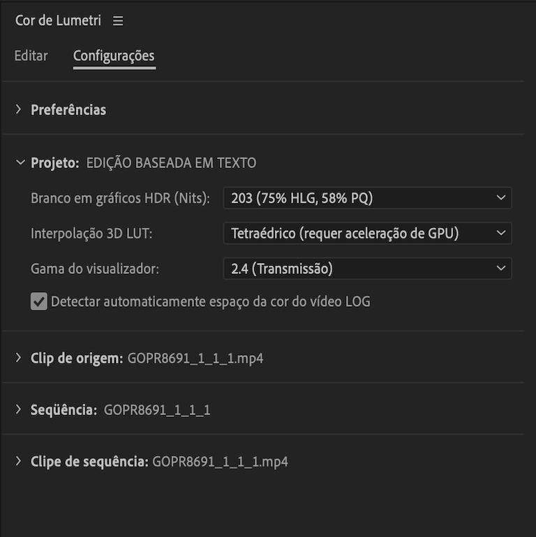 - Gerenciamento de cores e Cor de Lumetri