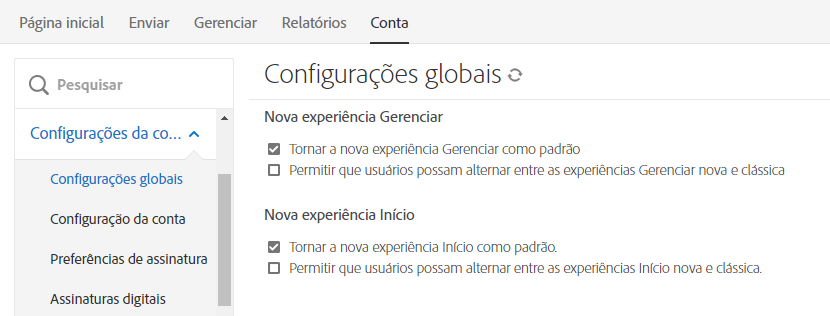 As atualizações de API e webhook desta versão podem ser encontradas na documentação da API do Acrobat Sign.