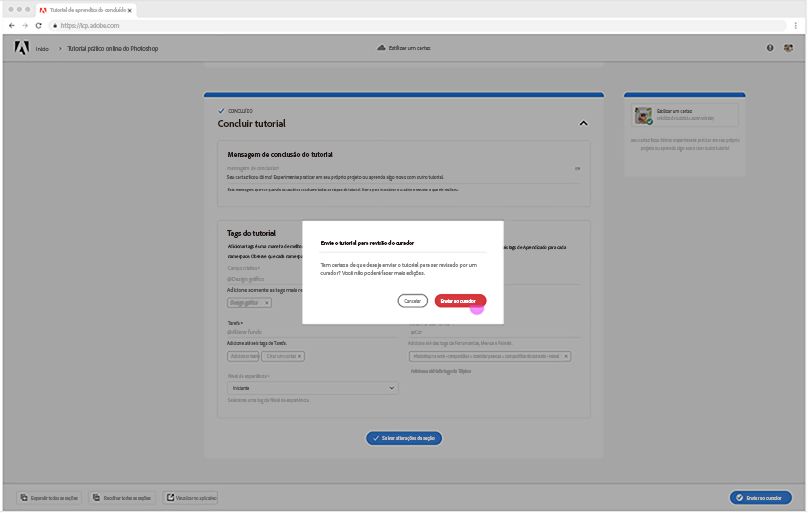 - Uma janela pop-up é exibida para confirmar se você deseja enviar o tutorial a um curador para análise.