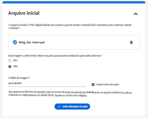 - O botão Salvar alterações de seção fica disponível somente depois que todos os campos necessários são preenchidos.