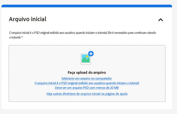 O arquivo inicial é o ativo original exibido aos usuários quando iniciam o tutorial. É necessário fazer upload do arquivo inicial para visualizar o tutorial no aplicativo. Consulte as Diretrizes de ativos para saber mais.