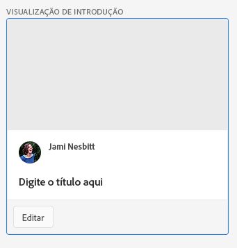 - Clique em Selecionar arquivo e navegue até a imagem principal que você preparou (jpeg de 1.200 x 600 px). A imagem principal enviada fica no topo da sua Visualização de Introdução.