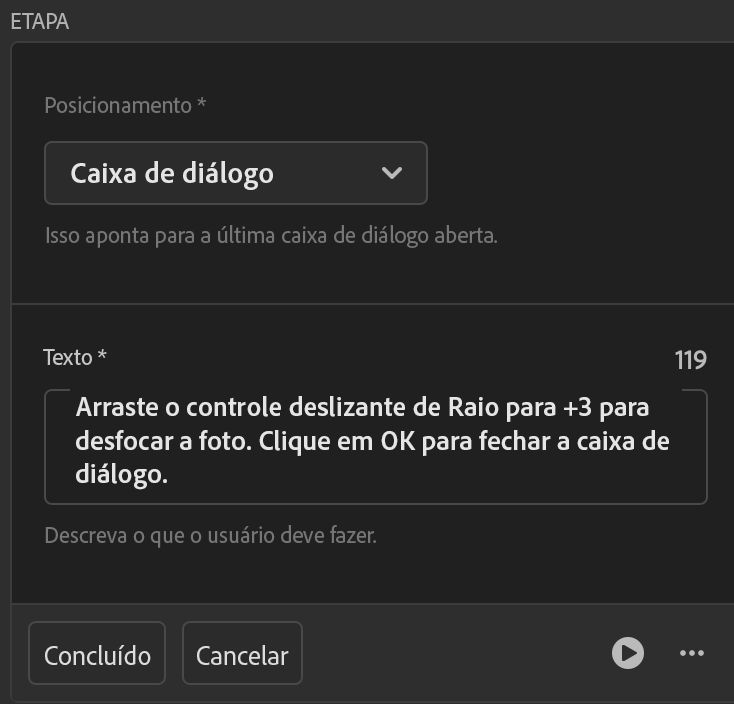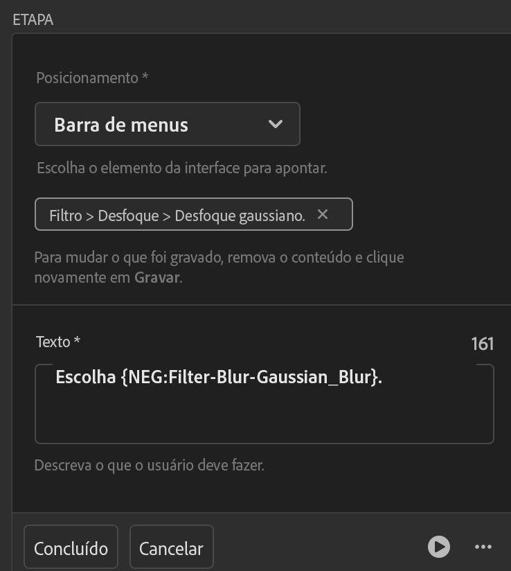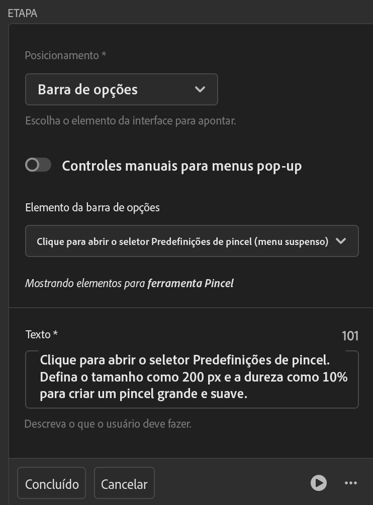 - No Criador de Tutoriais, exclua a etapa em que não conseguiu avançar no modo de visualização e crie-a novamente.