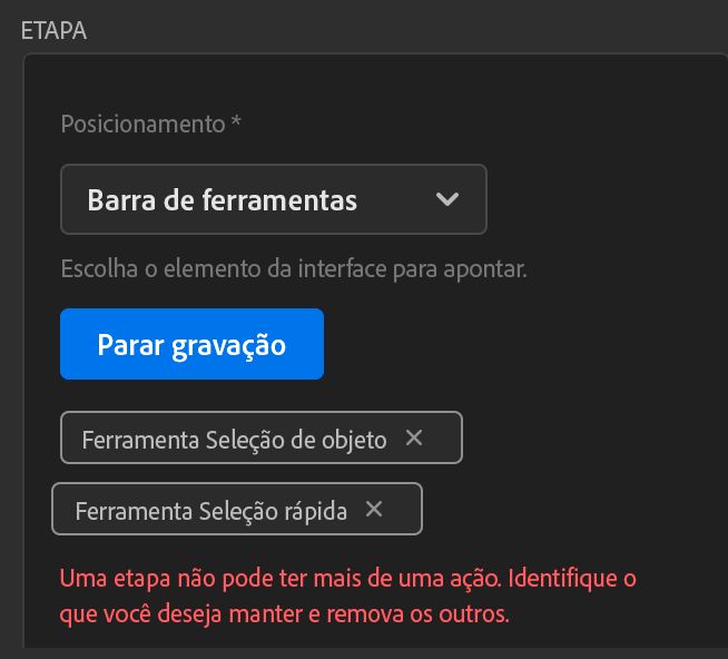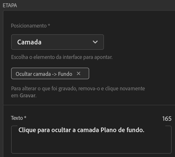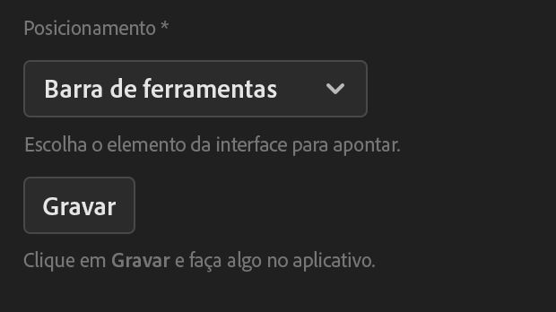 - O Criador de Tutoriais ajuda você exibindo o botão Gravar somente se o tipo de Posicionamento escolhido permitir a gravação de um coach mark.